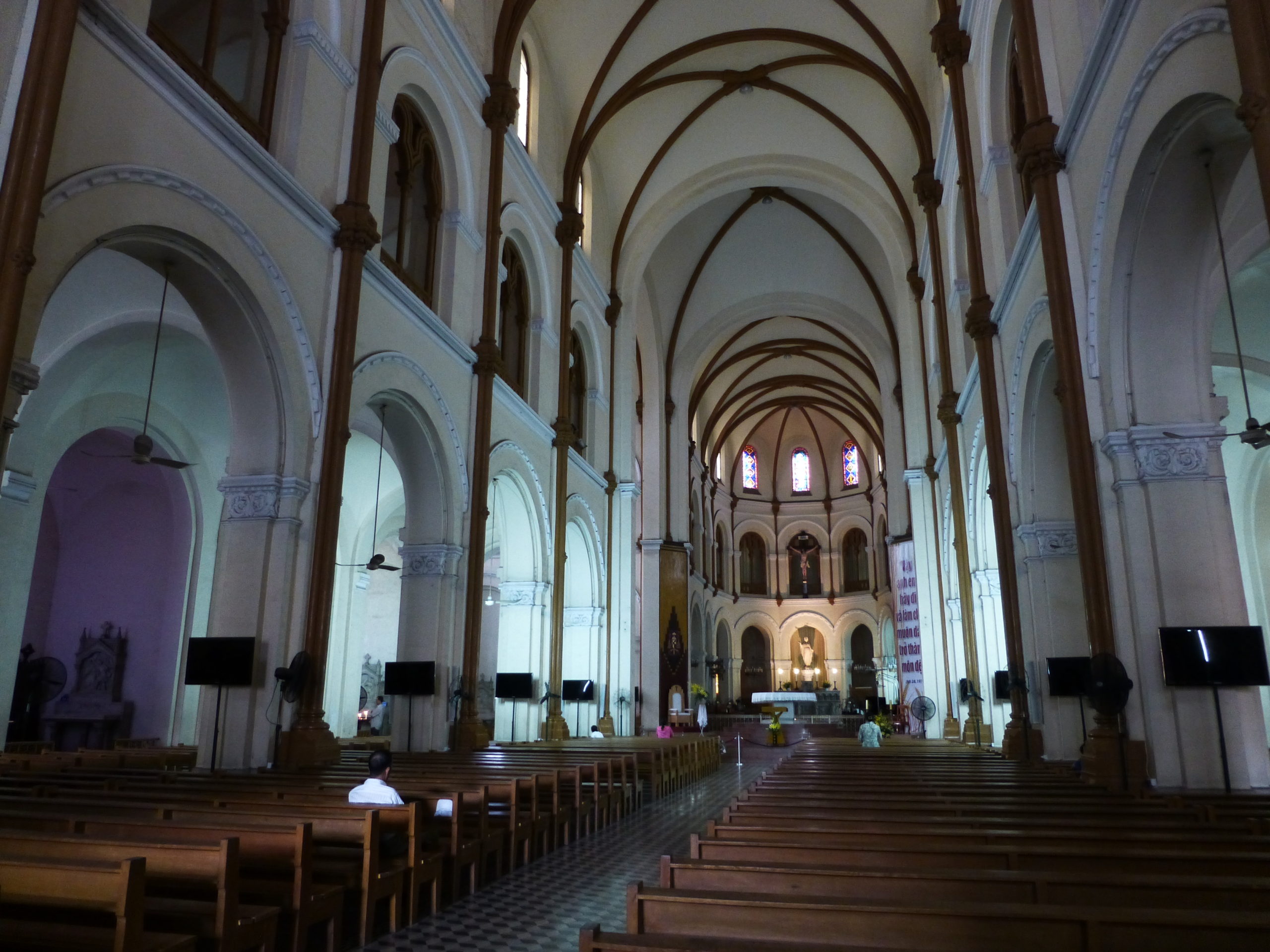Poslední jitro, poslední den, poslední hodiny. Dnešní den strávíme v největším vietnamském městě, Ho Chi Minově městě. Ale i místní raději používají starý název: Saigon. Potřebujeme zvládnout nějaké nákupy (poslouží Ben Thanh Market), památky (pagody Xa Loi a Dien Ngoc Hoang, katedrála Notre Dame) a včas se dostat na letiště. Za celý den jsme nachodili asi šestnáct kilometrů a večer byli tak akorát utahaní. Pavel chtěl původně navštívit i centrální saigonskou mešitu, ale už při večerní procházce zjistil, že je malinkatá, a usoudil, že za návštěvu v tak nabitém plánu nestojí. I katedrála ho trochu zklamala. Je sice hezká, ale nedá se jít dovnitř (i v otevíracích hodinách vás pustí jen do vchodu, ale přímo tím úžasným prostorem se procházet nemůžete). Pagody byly pěkné, do Dien Ngoc Hoang se dokonce dalo jít dovnitř. Nejvíc jsme si tedy užívali ruch velkoměsta jako takový (pro Pavla platí: „užíval“ = „se zájmem pozoroval a nasával atmosféru“; pro Jarču: „užívala“ = „těšila se, až už to putování nehostinnou krajinou skončí“). Saigon, ač větší než Hanoj, nám přišel takový organizovanější, evropštější. A přeplněnější. Představte si, že úplně každá ulice uprostřed města je asi jako pražská magistrála. Každopádně jsme pochopili, proč většina Vietnamců nosí roušky přes no
