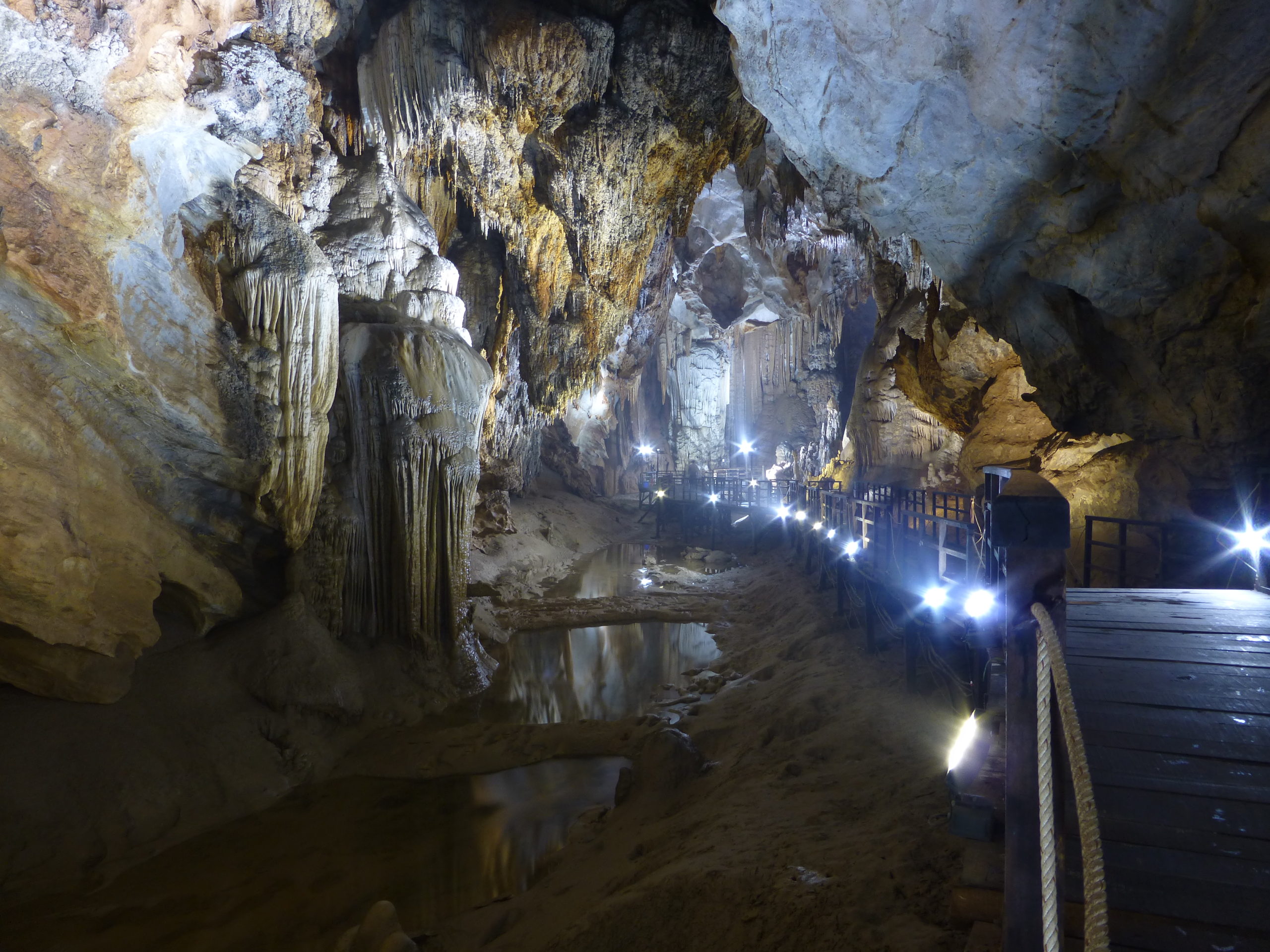 Po obědě přišel zážitek, ze kterého jsme byli všichni paf. V roce 2011 byla ve Vietnamu objevena největší dry cave (nezatopená jeskyně) na světě. Měří přes třicet kilometrů a i když je přístupný jen asi kilometr, tak je to ohromující podívaná. Jeskyně dostala název Paradise cave a opravdu je to ráj. I když jsou krápníky nasvícené, tak je to s vkusem a není to takový kýč jako v Halong Bay. Jeskyně je navíc v areálu „skoro nedotčeného“ pralesa a jde se k ní nádhernou přírodou. Ani se nám nechtělo odsud.